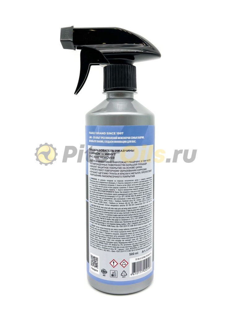 LAVR LN1436 Преобразователь ржавчины с цинком с триггером 0,5л