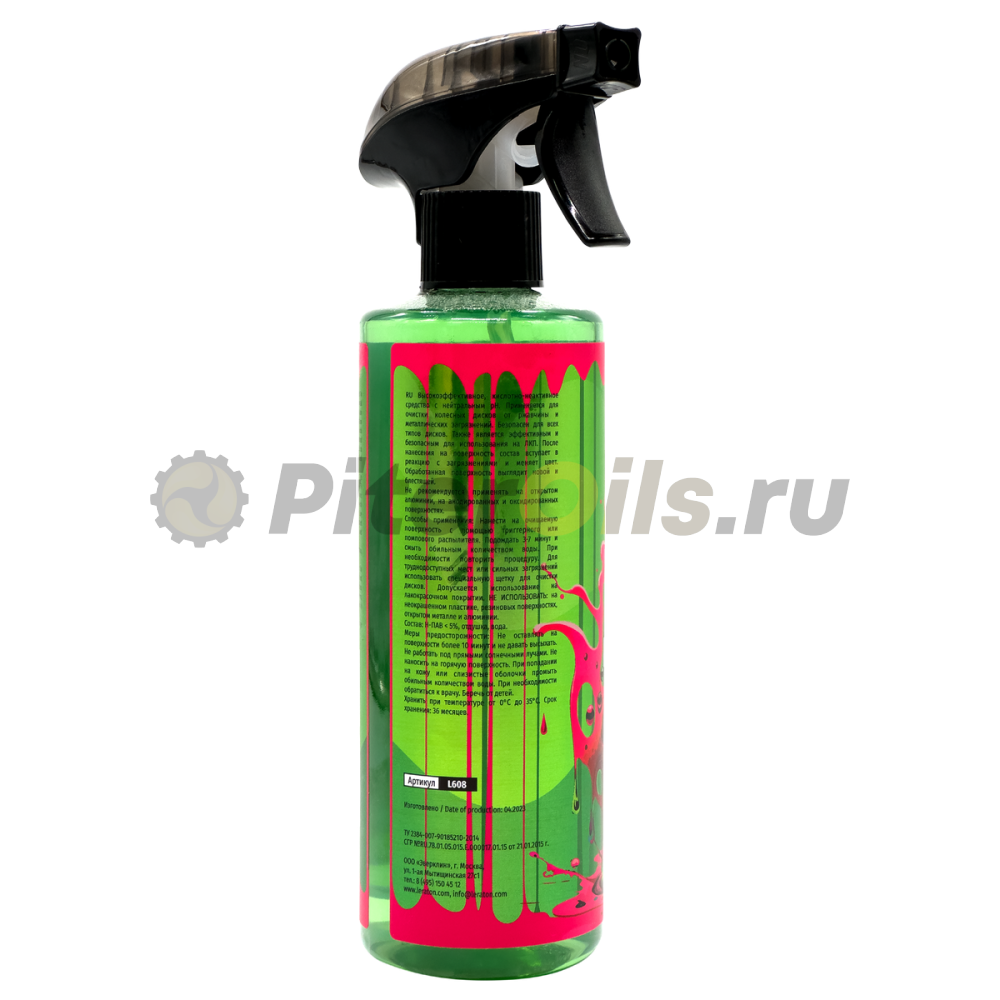 Способ применения: Нанести на очищаемую поверхность с помощью триггерного или помпового распылителя. Подождать 3-7 минут и смыть обильным количеством воды.  При необходимости повторить процедуру. Для труднодоступных мест или сильных загрязнений использовать специальную щетку для очистки дисков. Допускается использование на лакокрасочном покрытии.