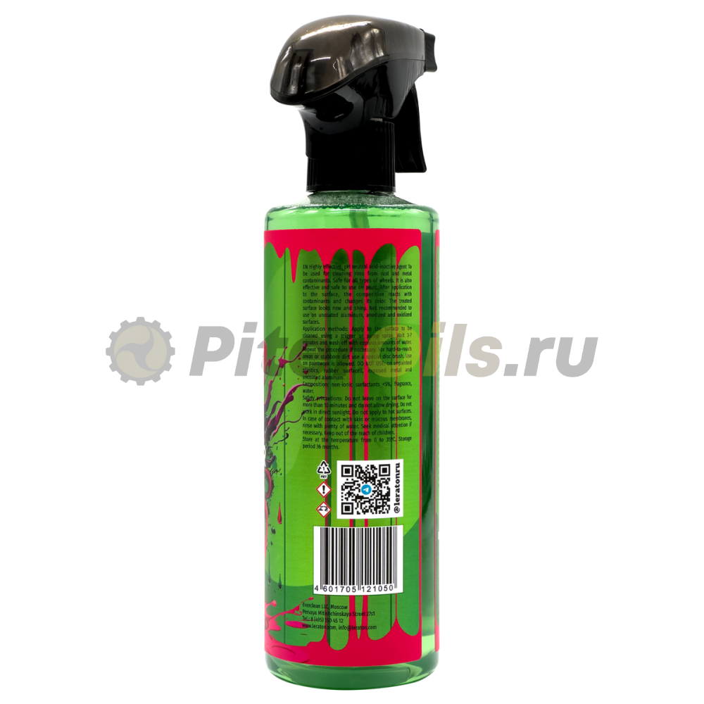 Высокоэффективное, кислотно-неактивное средство с нейтральным рН. Применяется для очистки колесных дисков от ржавчины и металлических загрязнений. Безопасен для всех типов дисков. Также является эффективным и безопасным для использования на ЛКП. После нанесения на поверхность состав вступает в реакцию загрязнениями и меняет цвет. Обработанная поверхность выглядит новой и блестящей.