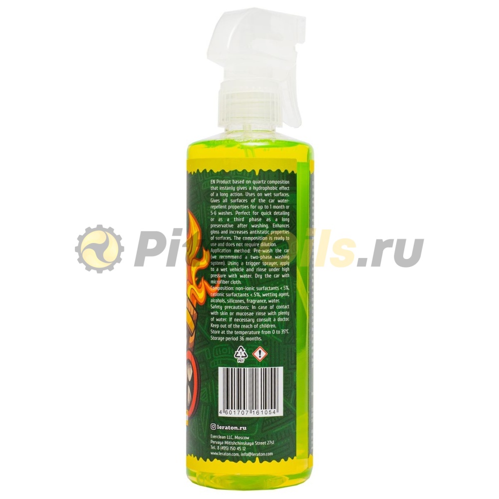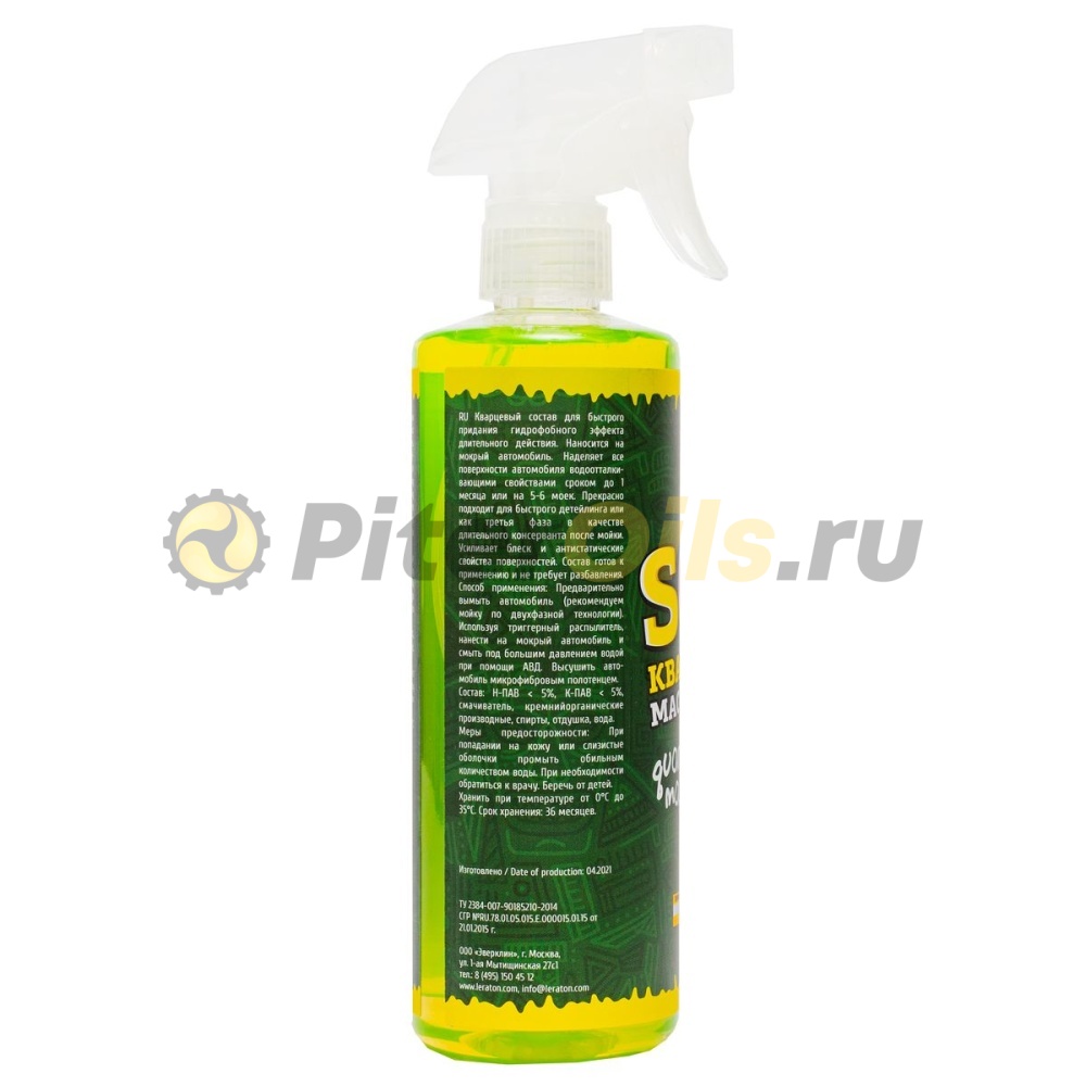 Кварцевый состав для быстрого придания гидрофобного эффекта длительного действия. Наносится на мокрый автомобиль. Наделяет все поверхности автомобиля водоотталкивающими свойствами сроком до 1 месяца или на 5-6 моек. Прекрасно подходит для быстрого детейлинга или как третья фаза в качестве длительного консерванта после мойки. Усиливает блеск и антистатические свойства поверхностей. Состав готов к применению и не требует разбавления.