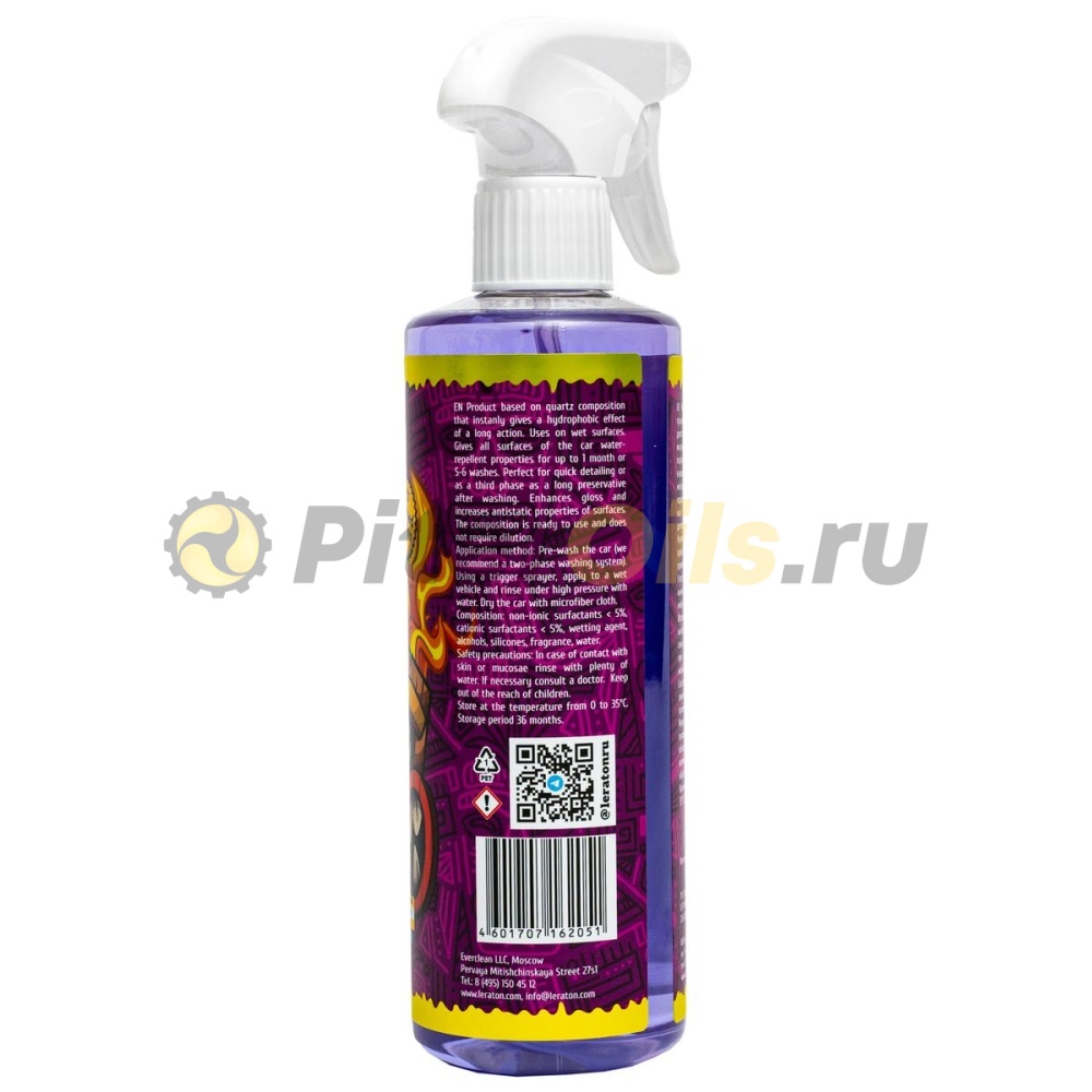 Кварцевый состав для быстрого придания гидрофобного эффекта длительного действия. Наносится на мокрый автомобиль. Наделяет все поверхности автомобиля водоотталкивающими свойствами сроком до 1 месяца или на 5-6 моек. Прекрасно подходит для быстрого детейлинга или как третья фаза в качестве длительного консерванта после мойки. Усиливает блеск и антистатические свойства поверхностей. Состав готов к применению и не требует разбавления.