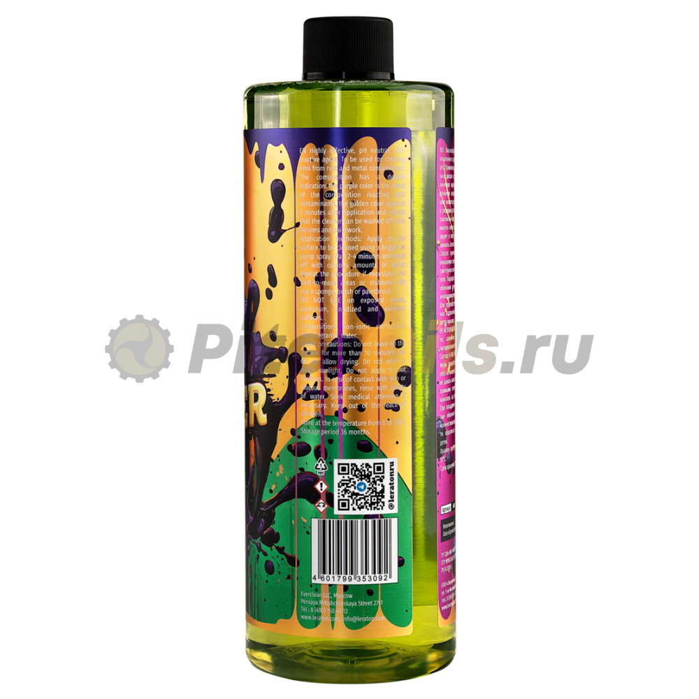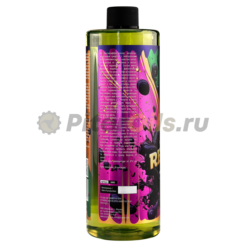 Высокоэффективное, кислотно-неактивное средство с нейтральным рН. Применяется для очистки колесных дисков от ржавчины и металлических вкраплений. Состав имеет двойную индикацию: фиолетовый цвет является результатом вступления в реакцию состава с загрязнениями, золотистый цвет появляется спустя 2 минуты после нанесения и сигнализирует о том, что очиститель можно смывать. Безопасен для дисков и ЛКП.