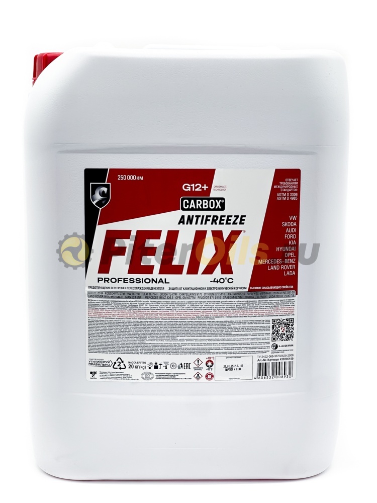 Professional Antifreeze FELIX CARBOX единственный российский антифриз нового поколения, который успешно прошел полный цикл лабораторных и стендовых испытаний в специализированной лаборатории в США на соответствие международным стандартам ASTM D 3306, ASTM D 4985, ASTM D 6210.