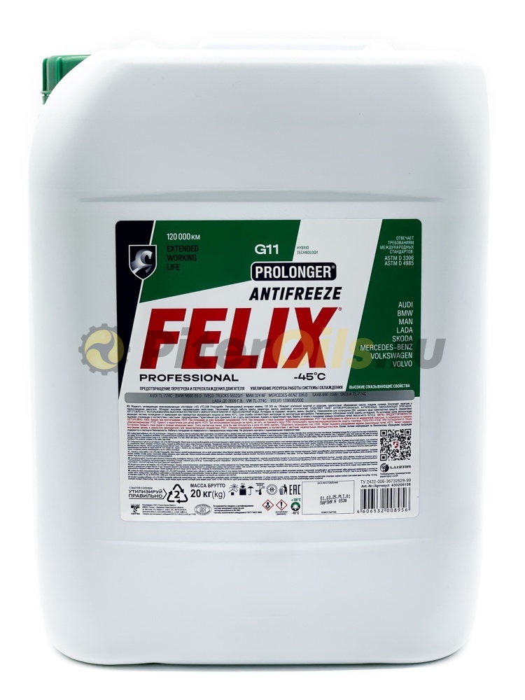 Professional Antifreeze FELIX PROLONGER предназначен для использования во всех легковых и грузовых автомобилях, в том числе высоконагруженных и форсированных, эксплуатируемых в тяжелых климатических и дорожных условиях.