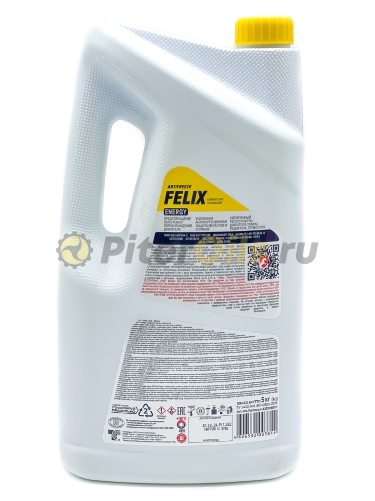 Felix EnergyG12+ желтый -40°C, 1л / 430206026 ― антифриз длительного действия, специально адаптированный для применения во всех типах сверхмощных дизельных, бензиновых двигателей и двигателей, работающих на природном газе.