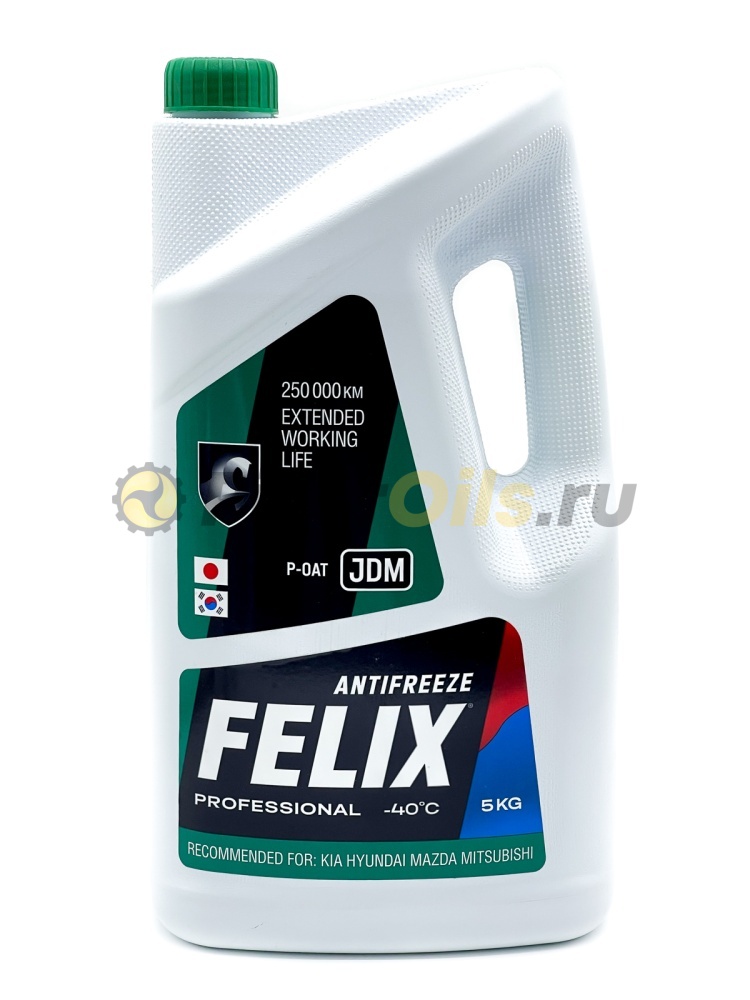 Антифриз FELIX® JDM представляет собой смесевую композицию на основе водного раствора этиленгликоля, воды и карбоксилатного пакета стабилизирующих и антикоррозионных присадок с добавлением фосфатных соединений, а также содержащих противопенные и красящие добавки.