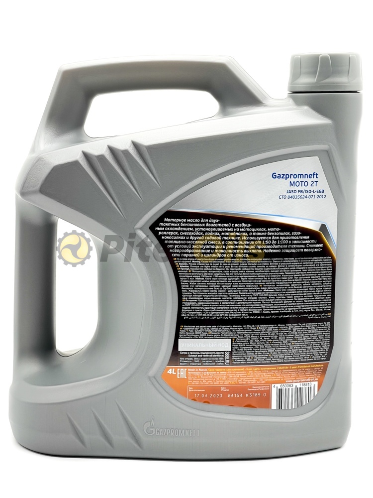 Масло Moto 2T 4л Gazpromneft 2389907005 рекомендовано для двухтактных бензиновых двигателей транспортных средств и садовой техники.