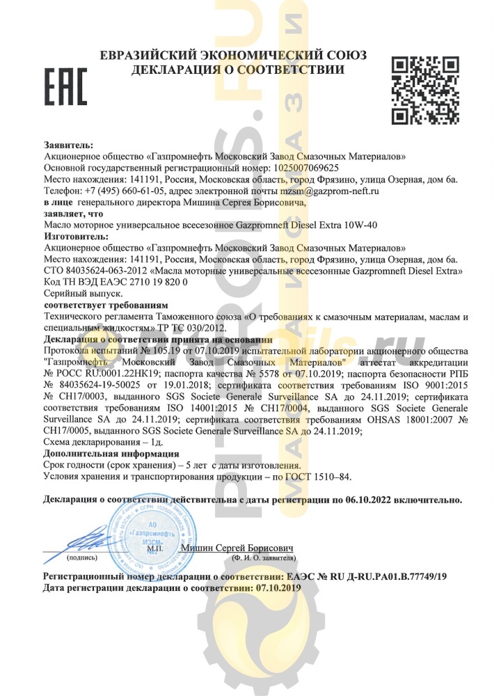 Всесезонные универсальные полусинтетическое (Gazpromneft Diesel Extra 10W-40) и минеральные (Gazpromneft Diesel Extra 15W-40, 20W-50) моторные масла, производятся с использованием высококачественных базовых масел и сбалансированного пакета присадок. Благодаря использованию улучшенных базовых масел моторные масла обладают: увеличенным сроком службы, сниженным расходом масла на угар и увеличенной стойкостью к химической коррозии.