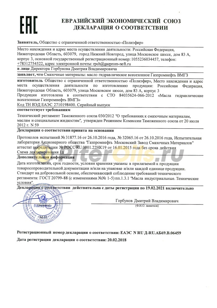 ГАЗПРОМ-НЕФТЬ ВМГЗ - Всесезонные гидравлические масла, производятся на высокоочищенной маловязкой минеральной основе, содержат эффективные пакеты присадок, обеспечивающие необходимые вязкостные, антиокислительные, противоизносные, антикоррозийные, низкотемпературные и антипенные свойства.