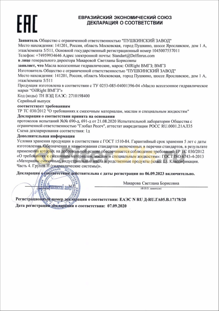 Масло гидравлическое ВМГЗ предназначено для гидроприводов и систем гидроуправления строительных, дорожных, подъемнотранспортных и др. машин,  в соответствии с рекомендациями производителя техники. Работоспособно при температурах в рабочем объеме масла от -40°С до +50°С. Рекомендовано для северных регионов как всесезонное, а для средней географической зоны - как зимнее. Обладает высокими низкотемпературными свойствами. Состав: маловязкая минеральная основа, противоизносные, антиокислительные и антипенные присадки.