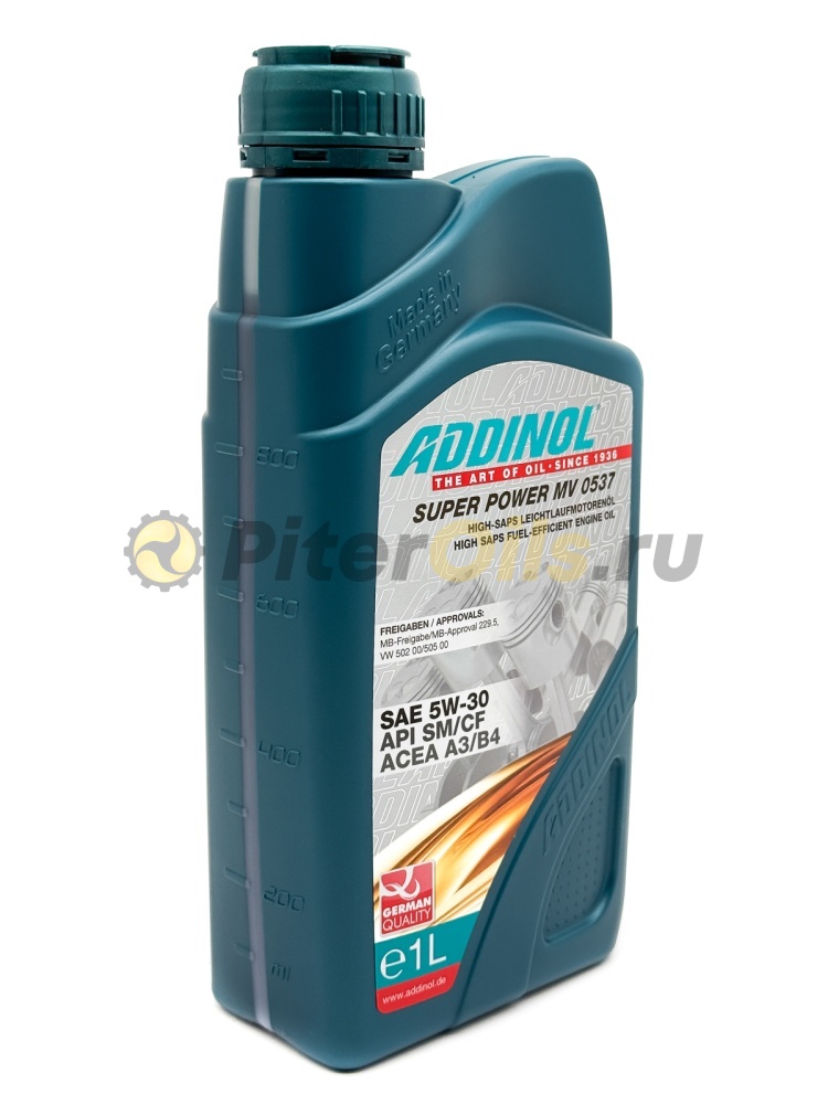 ADDINOL Super Power MV 0537 - высокомощное моторное масло легкого хода, относящееся к классу SAE 5W-30 и характеризующееся свойствами Longlife, разработано специально для ультрасовременных бензиновых и дизельных двигателей легковых автомобилей с турбонаддувом или без него, функционирующих при удлиненных интервалах технического обслуживания. Оптимально подобранное сочетание базовых масел, изготовленных по современным технологиям синтеза, а также эффективных присадок гарантируют исключительные эксплуатационные свойства масла, отличную смазку при любых температурах эксплуатации, высокие очищающие характеристики и прекрасную защиту от износа.