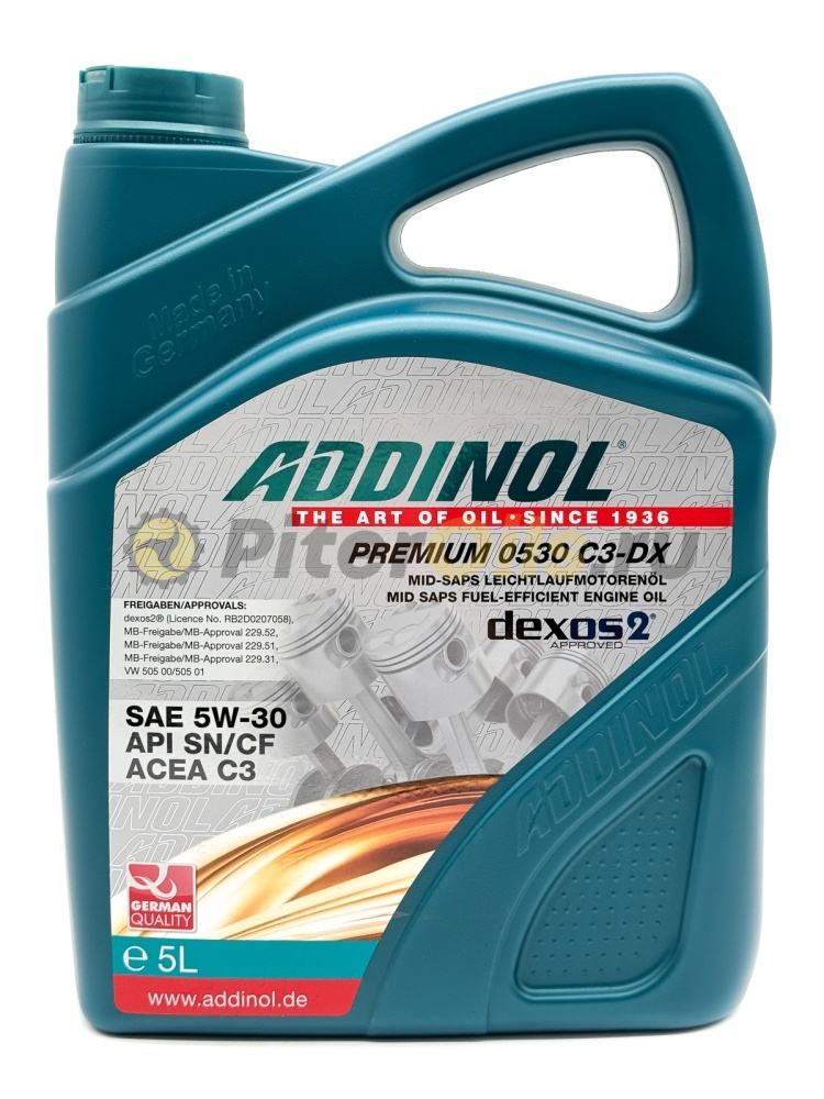 ADDINOL Premium 0530 C3-DX — это моторное масло легкого хода со свойством Longlife, изготовленное по самым современным технологиям синтеза. Моторное масло рекомендуется для бензиновых двигателей, функционирующих на обычном бензине, E85, природном (CNG) или сжиженном (LPG) газе, а также для дизельных двигателей. Данный продукт гарантирует оптимальную работу и длительный срок службы автомобилей, оборудованных сажевым фильтром для очистки выхлопных газов.
