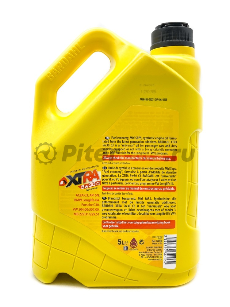 • Допуски BMW Longlife-04 PORSCHE C30 MB 229.31/229.51 VW 504.00/507.00