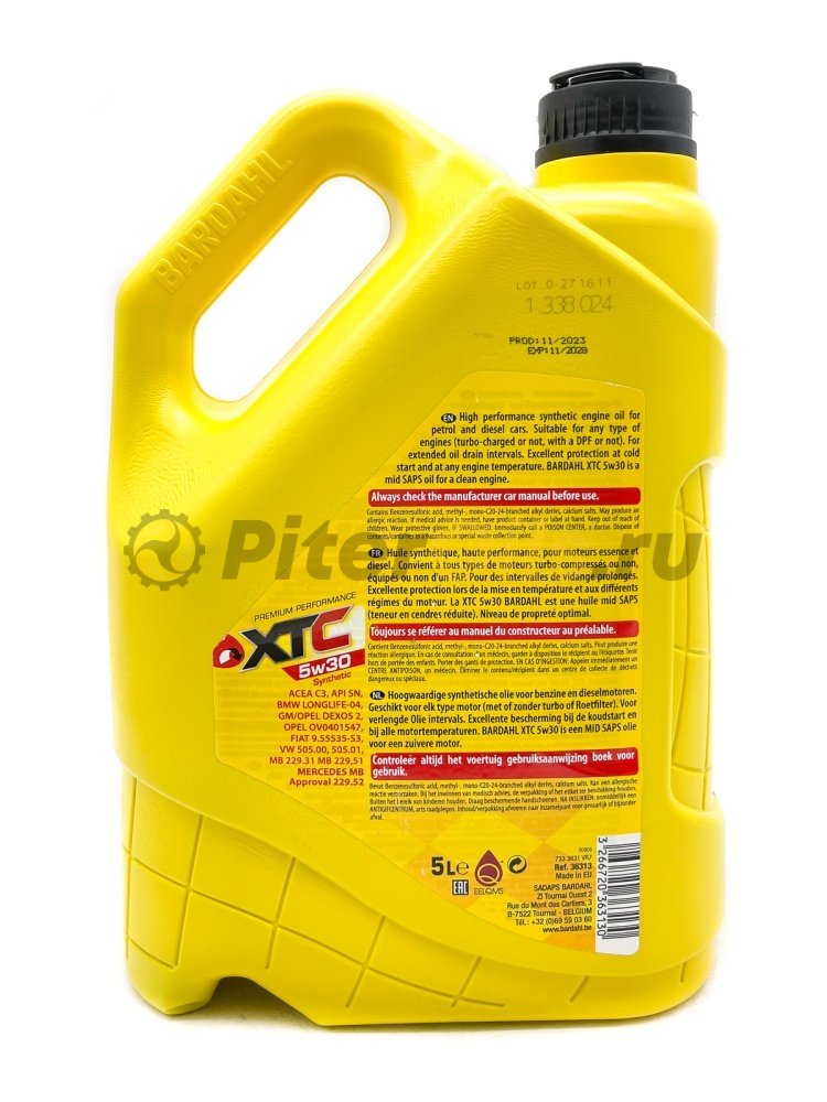 Высокопроизводительное синтетическое масло для бензиновых и дизельных двигателей. Применяется как в двигателях с турбонагнетателем, так и без него, с фильтром твердых частиц (DPF) или без него. Увеличенный интервал замены масла. Превосходная защита в условиях холодного пуска и при любой рабочей температуре. Масло BARDAHL XTC 5W30 имеет пониженное количество сульфатной золы, фосфора и серы (Mid SAPS) за счет чего обеспечивается чистота внутренних деталей двигателя.