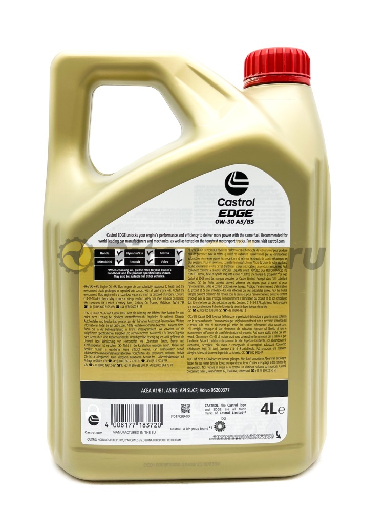 -Castrol EDGE 0w30 A5/B5  Подавляет образование отложений, способствуя повышению скорости реакции двигателя на нажатие педали акселератора