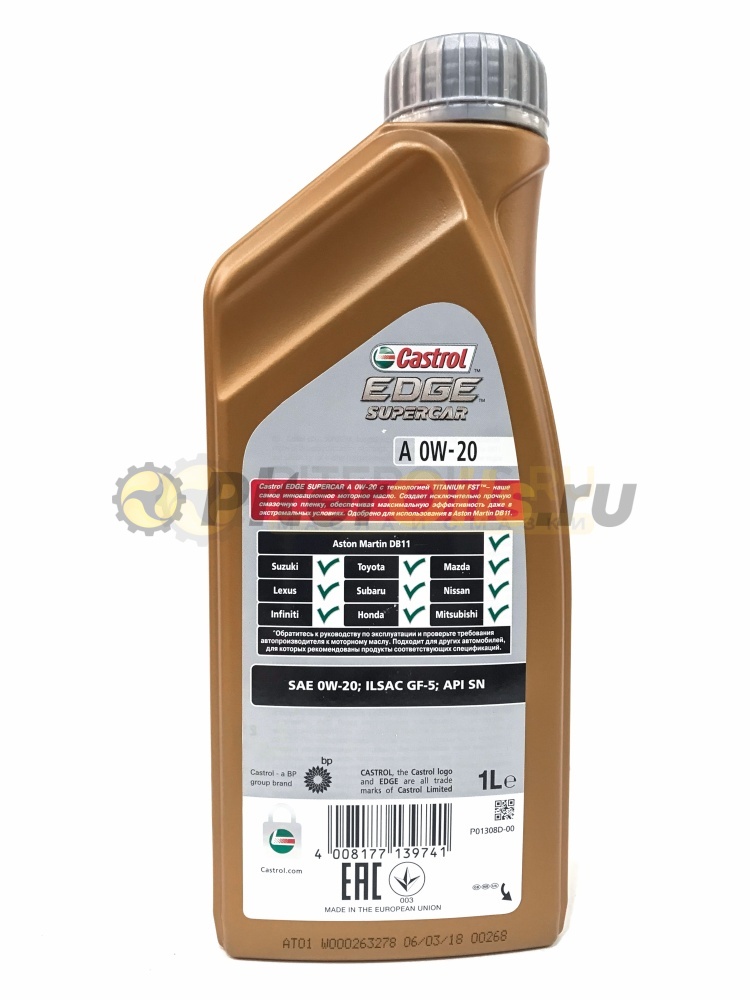 Castrol EDGE SUPERCAR A 0W-20 c технологией TITANIUM FST TM обеспечивает надёжную и максимально эффективную работу двигателей суперкаров, спортивных автомобилей, гоночных машин и форсированных моторов последнего поколения, которые эксплуатируются с повышенной нагрузкой, требующей от моторного масла непревзойдённой прочности смазочной плёнки и запаса эксплуатационных характеристик.