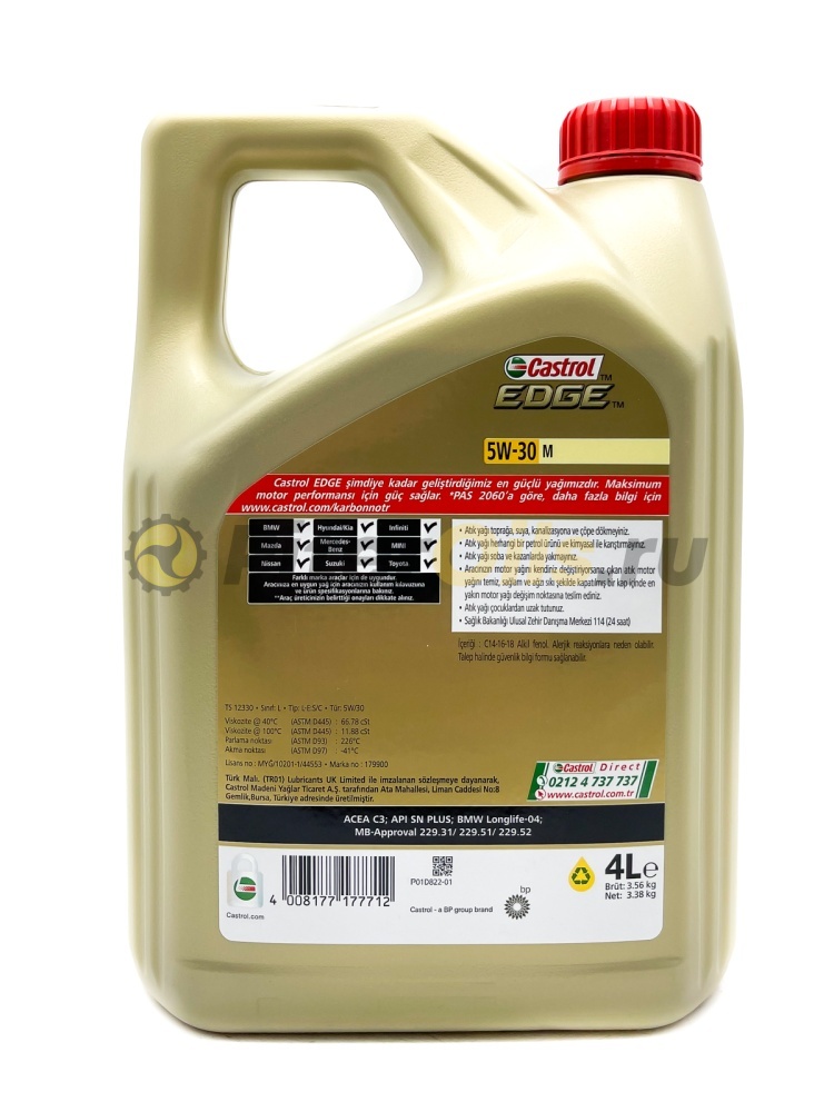 Castrol EDGE 5W-30 M предназначено для использования в бензиновых и дизельных двигателях, в которых производитель рекомендует применять моторные масла, соответствующие отраслевым стандартам ACEA C3, API SN PLUS и классу вязкости SAE 5W-30. Castrol EDGE 5W-30 M одобрено к применению ведущими производителями техники (см. раздел спецификаций и руководство по эксплуатации автомобиля).