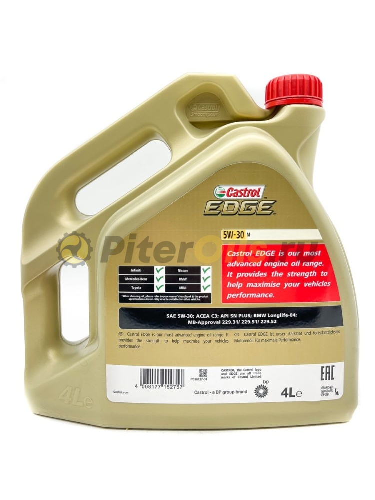 Castrol EDGE 5W-30 M – это естественный выбор владельцев автомобилей, желающих добиться максимальной эффективности от двигателей, созданных по новейшим на текущий момент технологиям, которые требуют масел с повышенными эксплуатационными характеристиками и высоким уровнем защиты деталей.Castrol EDGE 5W-30 M – это естественный выбор владельцев автомобилей, желающих добиться максимальной эффективности от двигателей, созданных по новейшим на текущий момент технологиям, которые требуют масел с повышенными эксплуатационными характеристиками и высоким уровнем защиты деталей.