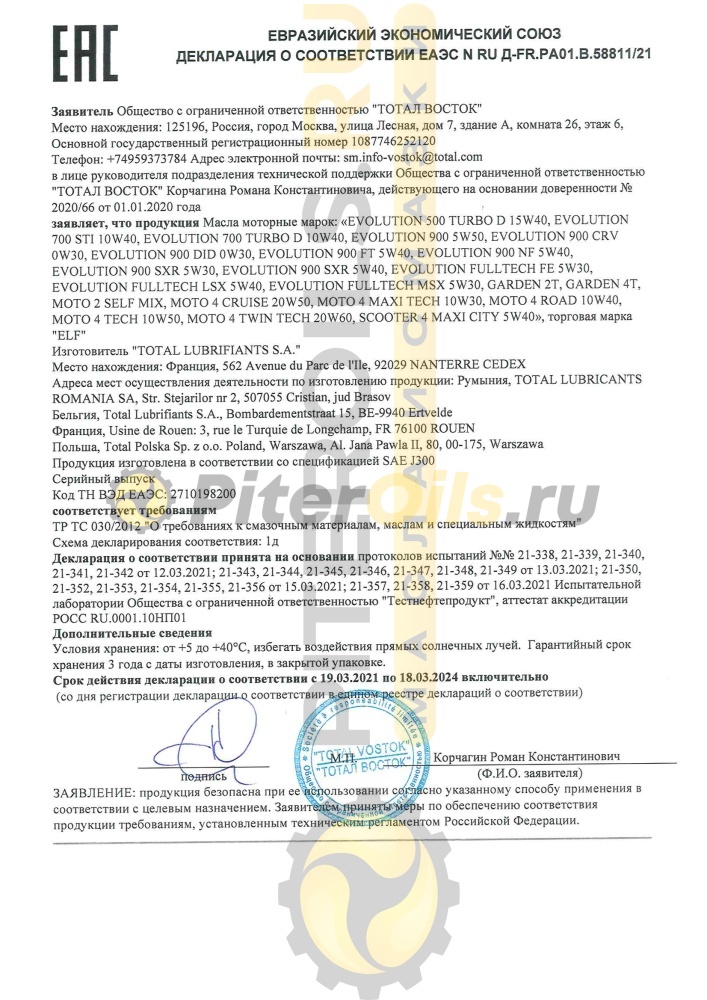 Elf Evolution 900 SXR рекомендован к применению: