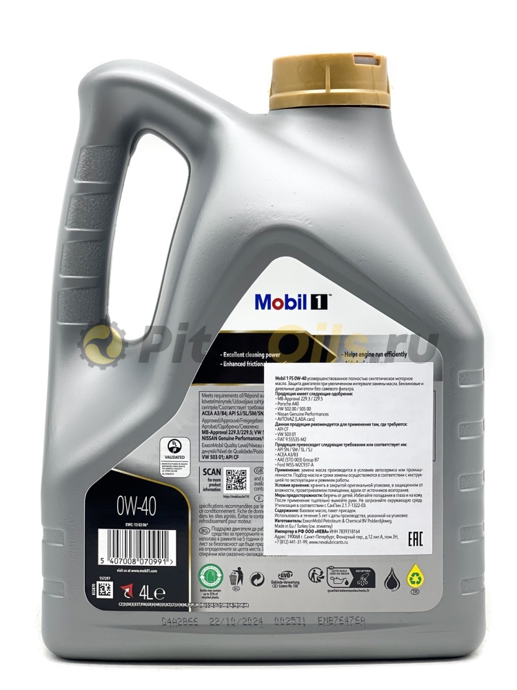 Mobil 1 0W-40 получил широчайший пакет присадок и рекомендован к применению: