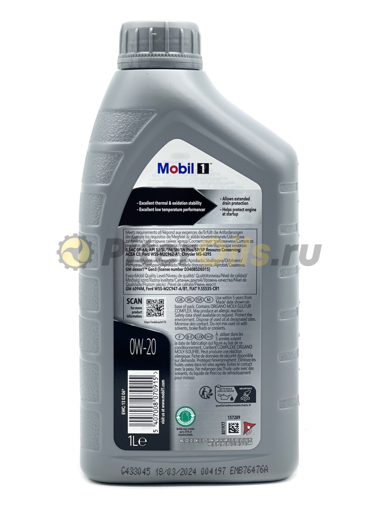 Mobil 1 0W20 ILSAC GF-6A (1л) 152560/155248/155250