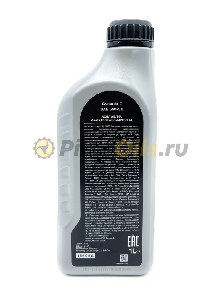 FORD Formula F 5w-30 - Высококачественное топливо сберегающее моторное масло, разработано и производится специально для применения в современных бензиновых и дизельных двигателях автомобилей FORD, где предписано использовать масла с вязкостью по SAE 5w-30 соответствующее спецификациям WSS-M2C913-C/B/A. Масло производится по синтетическим технологиям с применением высокоэффективных присадок. Способствует снижению потребления топлива. Может применяться круглый год. Обеспечит защиту от износа, коррозии и образования вредных отложений. FORD Formula F 5w-30 - Высококачественное топливо сберегающее моторное масло, разработано и производится специально для применения в современных бензиновых и дизельных двигателях автомобилей FORD, где предписано использовать масла с вязкостью по SAE 5w-30 соответствующее спецификациям WSS-M2C913-C/B/A. Масло производится по синтетическим технологиям с применением высокоэффективных присадок. Способствует снижению потребления топлива. Может применяться круглый год. Обеспечит защиту о