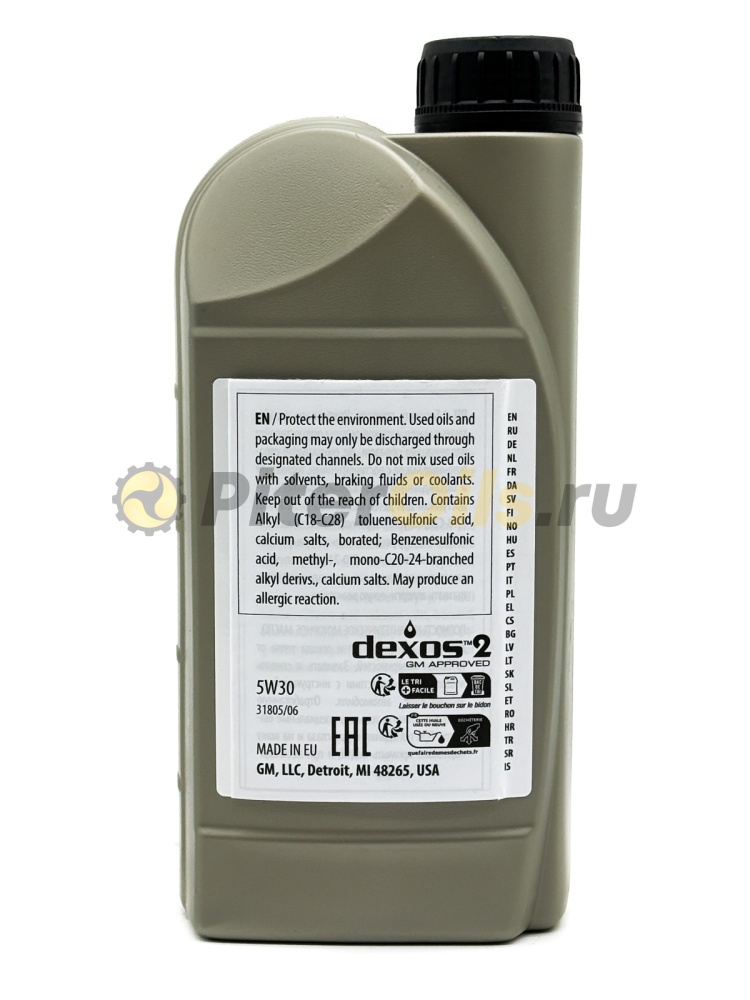 Моторное масло с низким содержанием серы, золы и фосфора («Low SAPs») – это запатентованная смесь высокоэффективных базовых масел и передовых присадок, состав которой подобран для обеспечения совместимости с новейшими дизельными сажевыми фильтрами (DPF) и каталитическими нейтрализаторами бензиновых автомобилей (CAT). Разработано с целью обеспечения исключительной очистительной способности, защиты от износа и общей защиты двигателя в сочетании с еще более усовершенствованной экономией топлива. Моторное масло GM Dexos2 SAE 5W-30 предназначено для современных бензиновых и дизельных двигателей, (включая турбированные) легковых автомобилей, микроавтобусов и джипов концерна General Motors.