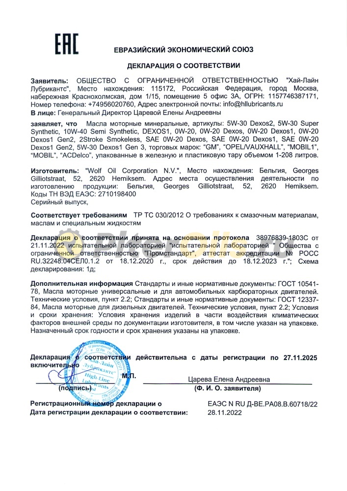 • Допуски GM-LL-A-025/GM-LL-B-025; MB 229.51/229.52/229.21; VW 502.00/505.00/505.01; BMW LL-04; FORD WSS-M2C917-A
