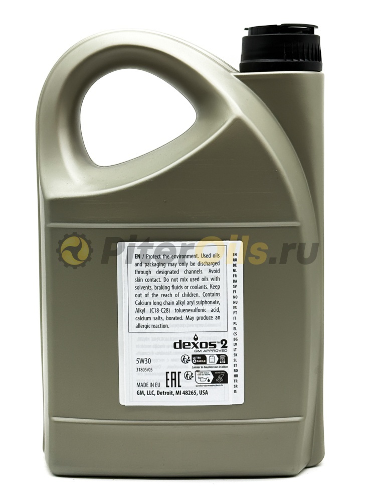 Моторное масло с низким содержанием серы, золы и фосфора («Low SAPs») – это запатентованная смесь высокоэффективных базовых масел и передовых присадок, состав которой подобран для обеспечения совместимости с новейшими дизельными сажевыми фильтрами (DPF) и каталитическими нейтрализаторами бензиновых автомобилей (CAT). Разработано с целью обеспечения исключительной очистительной способности, защиты от износа и общей защиты двигателя в сочетании с еще более усовершенствованной экономией топлива. Моторное масло GM Dexos2 SAE 5W-30 предназначено для современных бензиновых и дизельных двигателей, (включая турбированные) легковых автомобилей, микроавтобусов и джипов концерна General Motors.