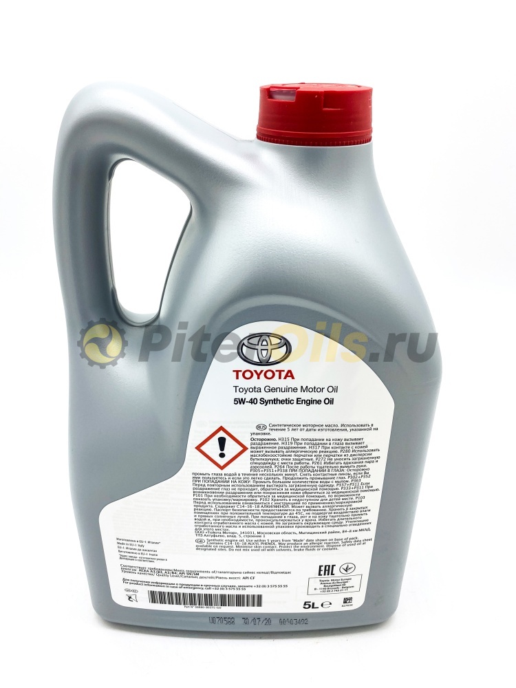 Синтетическое моторное масло Toyota SAE 5W-40 отвечает самым жестким требованиям, предъявляемым к маслам последнего поколения. Стабильность вязкостных и смазывающих свойств, постоянство эксплуатационных характеристик в различных условиях работы, отличная текучесть при низких температурах - вот отличительные черты синтетического моторного масла Toyota SAE 5W-40.