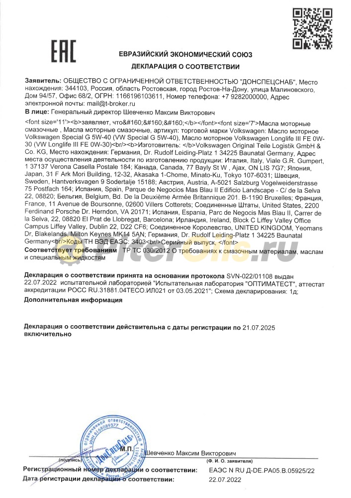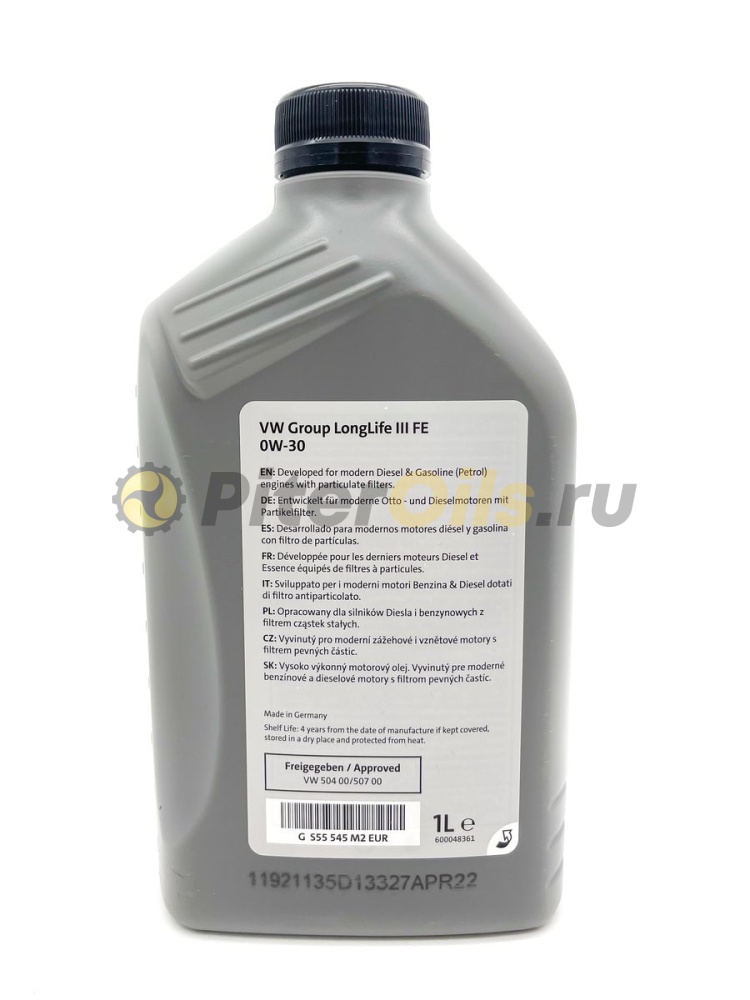 Volkswagen Longlife III 0W-30 (1л) GR52195M2  Благодаря специальному пакету присадок и термостабильной основе данное масло позволяет увеличить межсервисные интервалы замены согласно рекомендациям автопроизводителей. Обеспечивает максимальный ресурс сажевых фильтров дизельных авто.