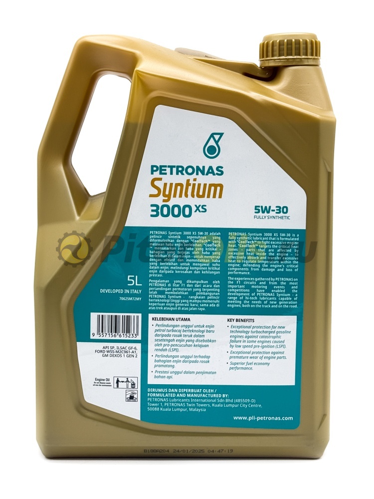 PETRONAS Syntium 3000 XS 5W-30 разработан в соответствии с последними спецификациями API SP и GF-6 и подходит для некоторых легковых автомобилей, таких как GM и Ford (см. руководство пользователя).