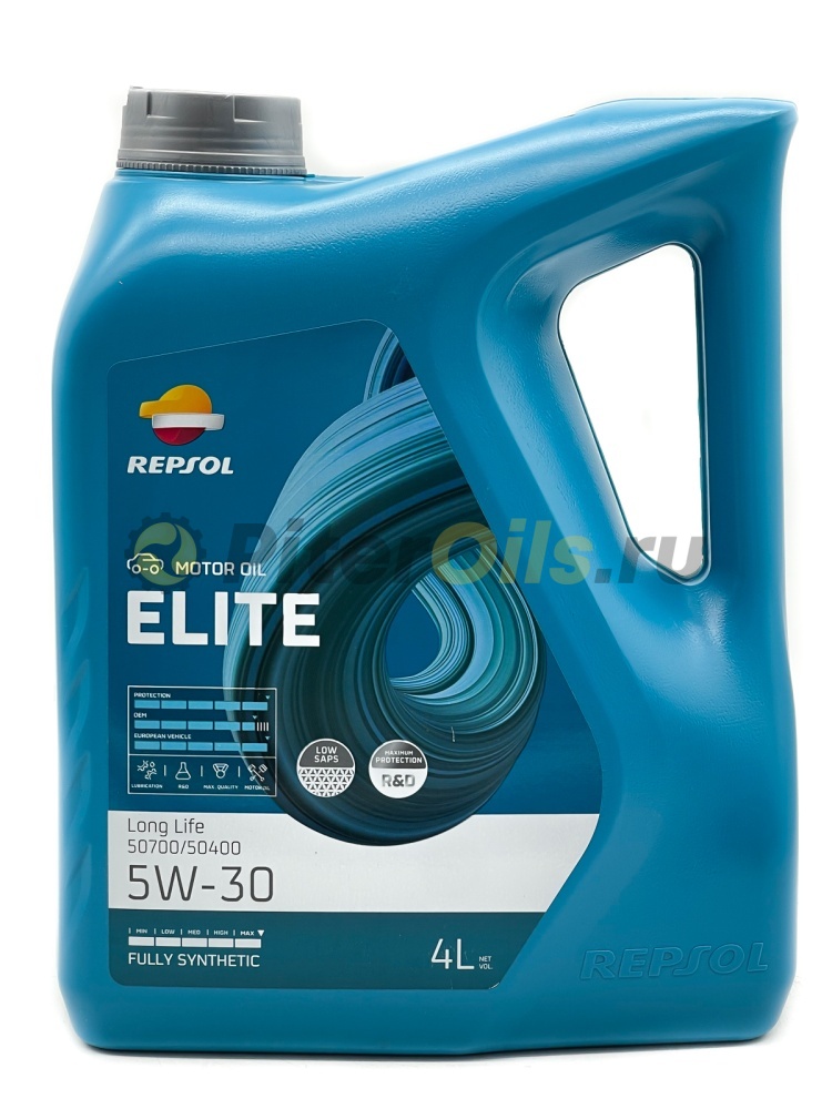 Синтетическое масло REPSOL ELITE LONG LIFE 50700/50400 5w30, разработанное с учетом требований современных бензиновых и дизельных двигателей группы VW-Audi-Seat-Skoda и соответствующее новым спецификациям VW50700/50400, которые устанавливают увеличенный интервал замены масла.