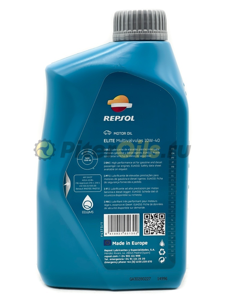 Высококачественное синтетическое масло REPSOL ELITE MULTIVALVULAS 10W40, предназначено для использования в современных бензиновых и дизельных двигателях.