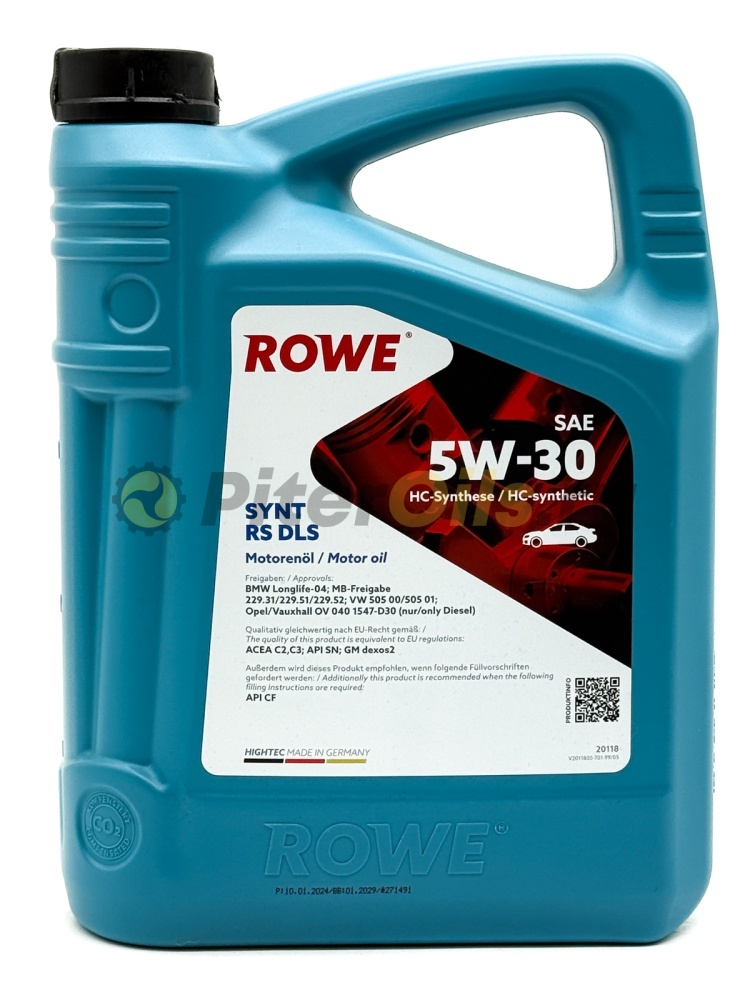 ROWE Моторное масло HIGHTEC SYNT RS DLS SAE 5W-30 (4л) 20118-0040-99 Всесезонное моторное масло с хорошими антифрикционными свойствами премиум-класса на основе технологии HC-Synthese для бензиновых и дизельных двигателей легковых автомобилей с турбонаддувом и без турбонаддува, включая сажевые фильтры. Этот лидирующий продукт особенно хорошо подходит как рационализированное масло согласно данным спецификациям.