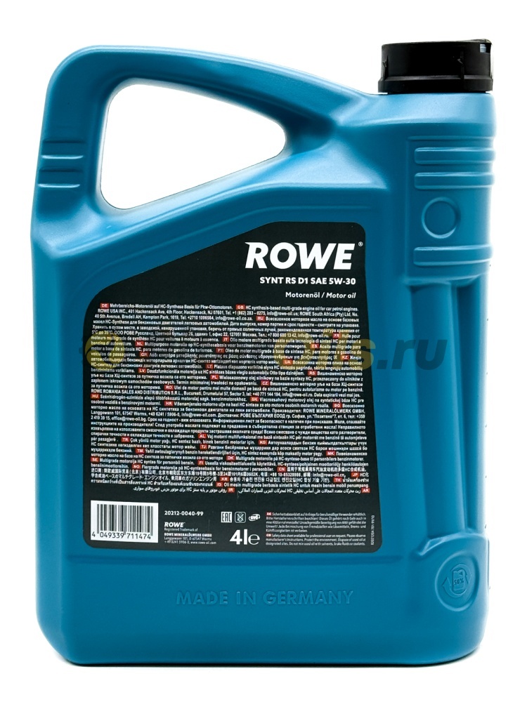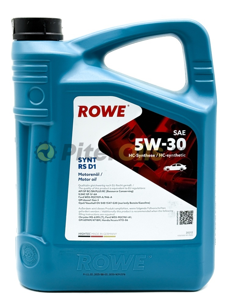 ROWE Моторное масло HIGHTEC SYNT RS D1 SAE 5W-30 (4л) 20212-0040-99 Всесезонное моторное масло с хорошими антифрикционными свойствами премиум-класса на основе технологии HC-Synthese для бензиновых двигателей легковых автомобилей с турбонаддувом и без турбонаддува согласно предписаниям производителя.