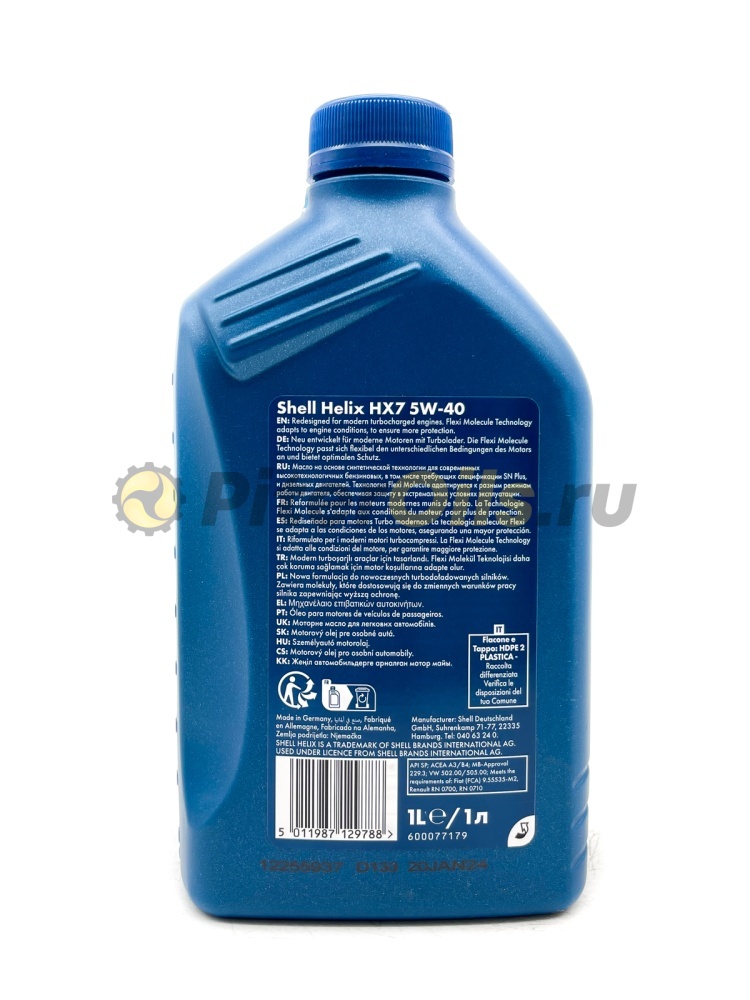 Shell Helix HX7 - разработано с использованием специальных базовых масел, которые обладают лучшими низкотемпературными свойствами, чем минеральные масла, делая более легким запуск двигателя. Shell Helix HX7 также обладает специальной активной моющей технологией. Оно эффективнее, чем обычные моторные масла, защищает двигатель, непрерывно предотвращая образование загрязнений и отложений. Shell Helix HX7 позволяет более полно реализовать возможности двигателя вплоть до следующей замены масла.