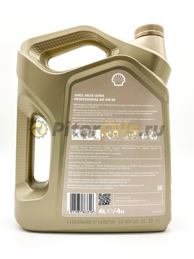 Моторное масло Shell Helix Ultra Professional AG 5W-30 одобрено General Motors для бензиновых и дизельных двигателей автомобилей и отвечает требованиям спецификации GMW16177 (dexos2™ ). Оно разработано специально для того, чтобы отвечать требованиям данной спецификации, включающей в себя некоторые требования API SN, ACEA C3 и внутренних тестов GM для бензиновых и дизельных двигателей, и для мирового применения в качестве масла для сервисного обслуживания.