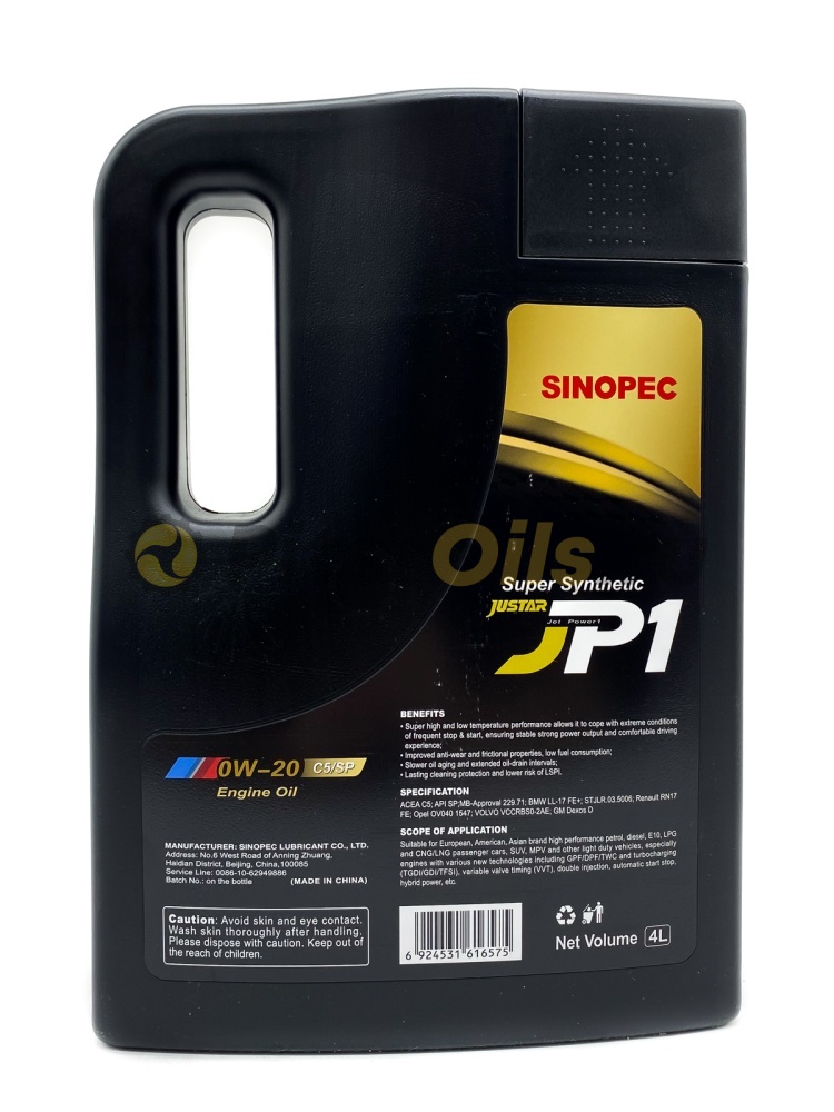Sinopec JUSTAR JP1 C5/SP 0W-20 Engine Oil 4л 0609100063010012