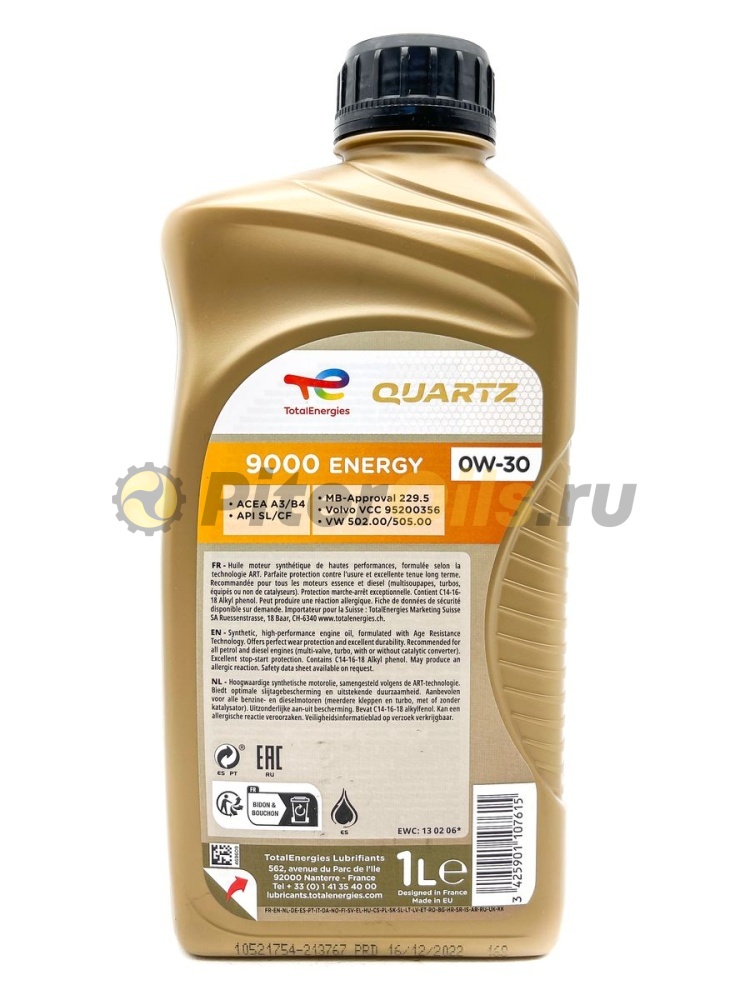 Total Quartz 9000 Energy 0W-30 A3/B4, SL/CF (1л) 166249