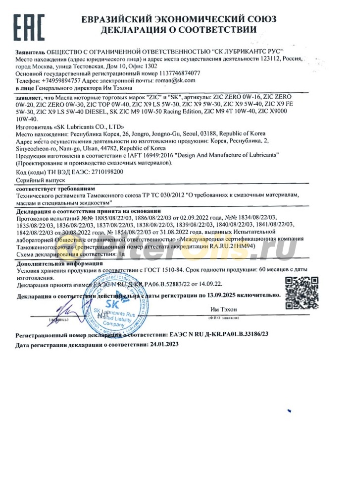 Изготовлено на основе собственного синтетического базового масла YUBASE.