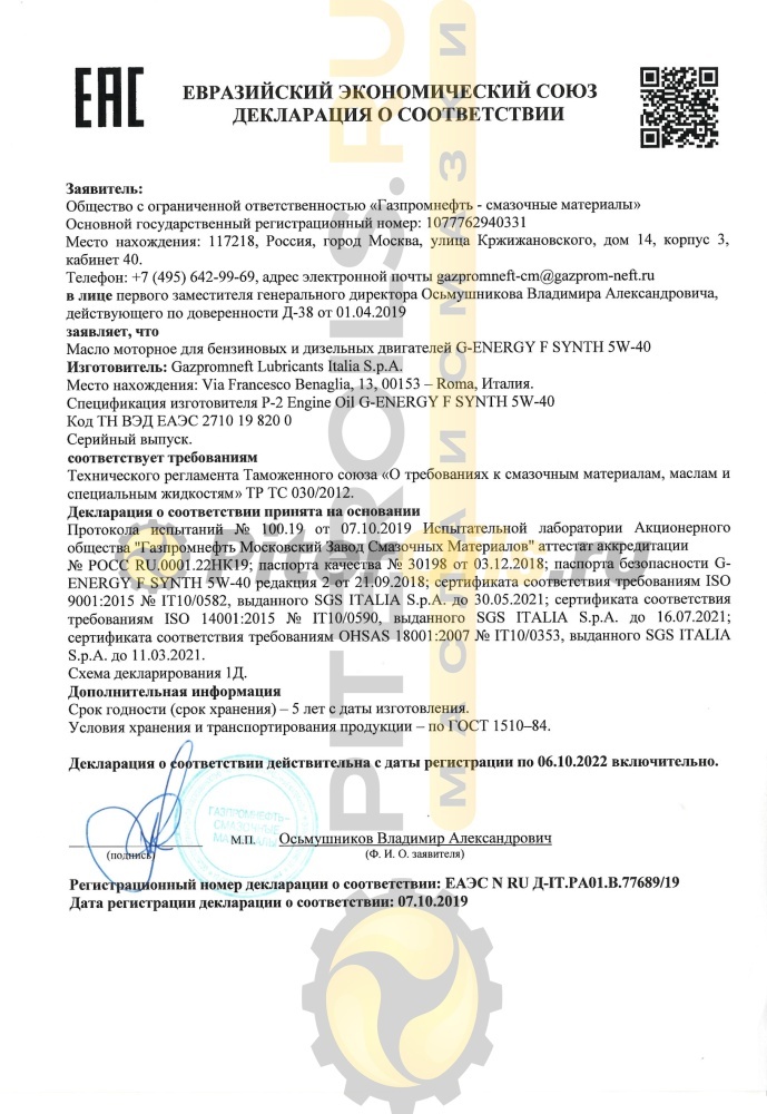 Синтетика G-Energy F Synth 5W-40 – полностью синтетическое (Fully Synthetic) моторное масло.