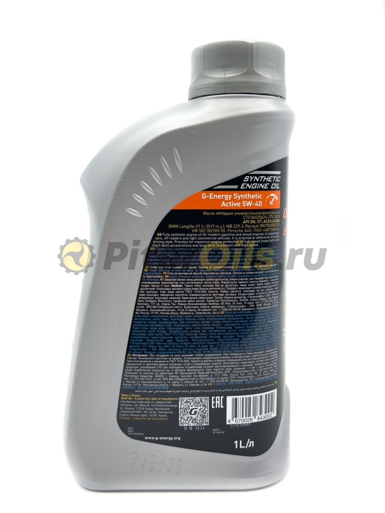 G-Energy Synthetic Active 5W-40 - синтетическое моторное масло на основе базовых компонентов G-Base для бензиновых и дизельных двигателей. Предназначено для эффективной работы и максимальной защиты двигателя при активном использовании автомобиля, включая резкие ускорения, движение как в условиях города, так и в режиме трассы.