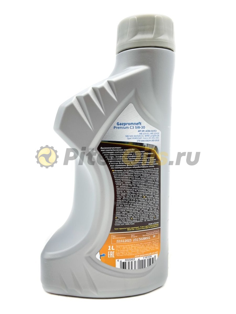 Gazpromneft Premium C3 5W-30 - полностью синтетическое всесезонное универсальное моторное масло, предназначенное для максимальной защиты современных высокофорсированных бензиновых и дизельных двигателей легковой техники, работающей в различных условиях эксплуатации. Полностью совместимо со всеми системами снижения токсичности выхлопных газов: DPF, TWC, EGR, SCR. Масло Gazpromneft Premium С3 5W-30 имеет официальную лицензию API SP.