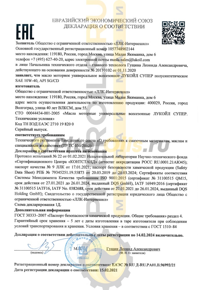 Лукойл Супер 10W40 SG/CD п/с (4л) 19192