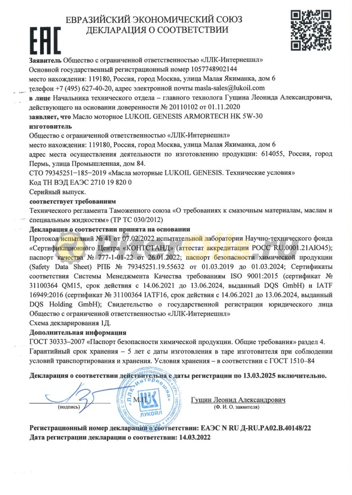 Лукойл GENESIS ARMORTECH HK 5W30 (1л) 3149286