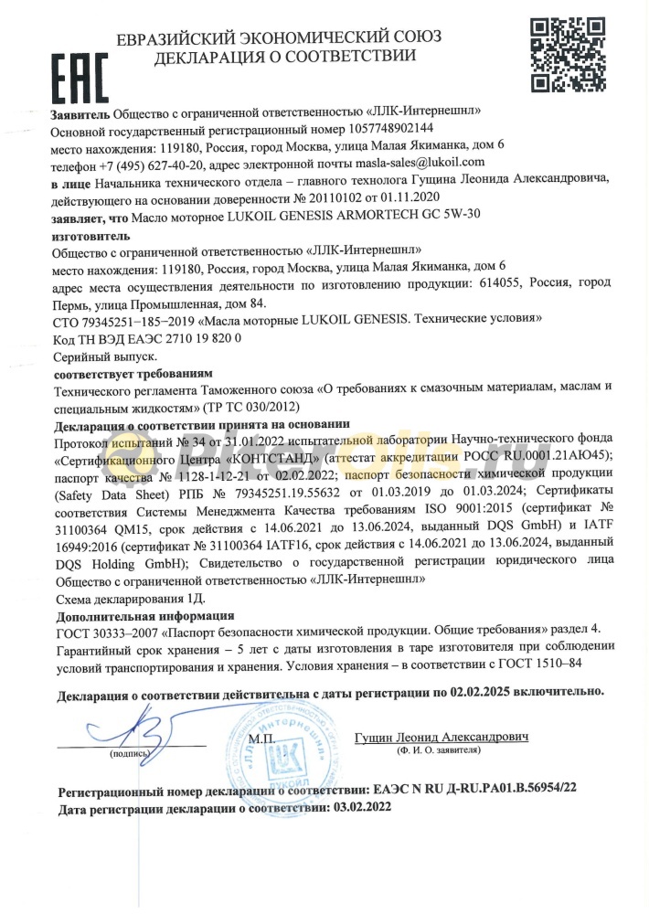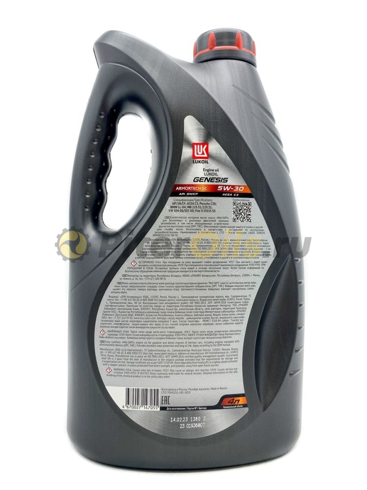 LUKOIL GENESIS ARMORTECH GC 5W-30 - cинтетическое моторное масло для бензиновых и дизельных двигателей легковых автомобилей, в том числе оборудованных турбонаддувом и устройствами доочистки выхлопных газов (каталитическими нейтрализаторами и фильтрами сажевых частиц (DPF)). Разработано с использованием базовых масел на полиальфаолефиновой (ПАО) основе с применением инновационной технологии DuraMax®.