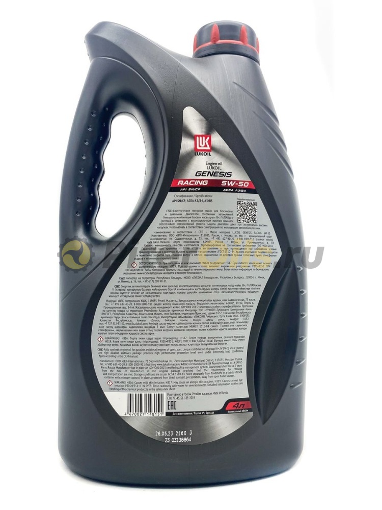 LUKOIL GENESIS RACING 5W-50 - высокоэффективное синтетическое моторное масло для спортивных высокофорсированных автомобилей. Производится с применением передовой технологии Duramax® в сочетании с базовыми маслами группы IV (ПАО) и V (эстеры).
