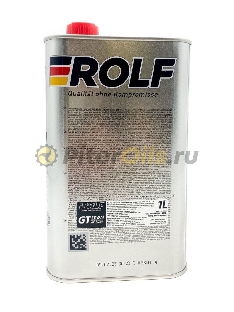 Премиальное полностью cинтетическое моторное масло с комбинацией высококачественных базовых компонентов с новейшими присадочными технологиями обеспечивает быстрый и легкий запуск двигателя при самых низких температурах, превосходную защиту двигателя от износа и увеличенный интервал замены. Предотвращает образование отложений в масляной системе, обеспечивает чистоту двигателя.  Синтетическое масло ROLF GT 5W-30 имеет высшую спецификацию моторных масел для бензиновых двигателей легковых автомобилей - API SN.