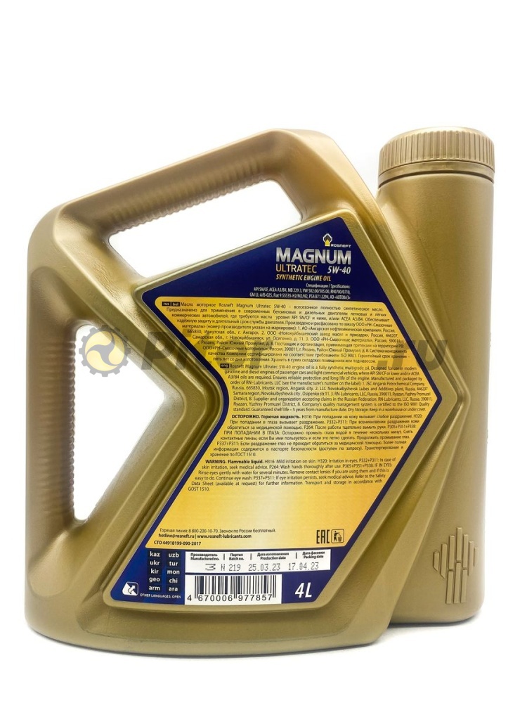 Rosneft Magnum Ultratec 5W-40 – полностью синтетическое моторное масло эксплуатационного уровня API SN/CF. Инновационная технология масла Rosneft Magnum Ultratec специально разработана для современных автомобилей ведущих мировых производителей техники, таких как Mercedes-Benz, Volkswagen, Renault, Ford, GM, Fiat, Peugeot-Citroen. Использование современного салицилатного пакета присадок обеспечивает наилучшую на сегодняшний день защиту двигателя от образования высоко- и низкотемпературных отложений в реальных российских условиях эксплуатации.